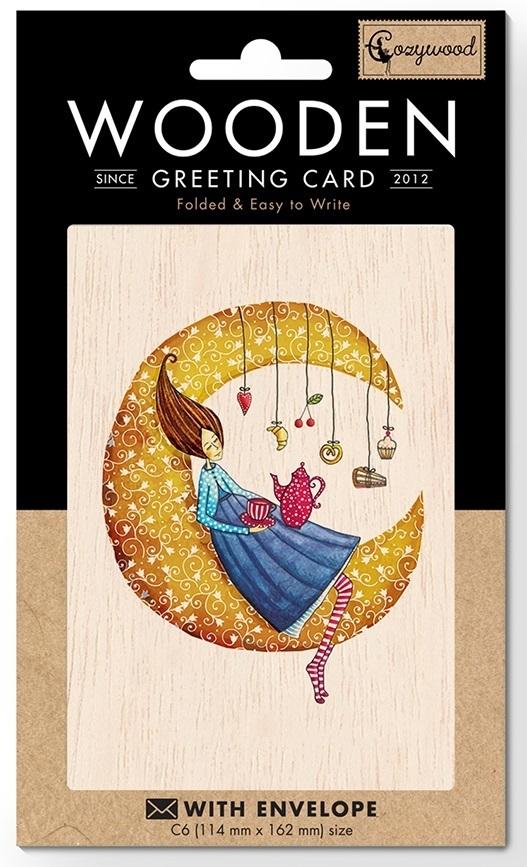 Karnet drewniany C6 + koperta Księżyc