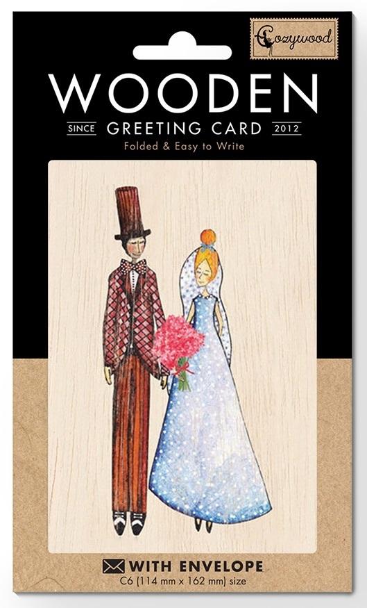 Karnet drewniany C6 + koperta Ślub Para Młoda