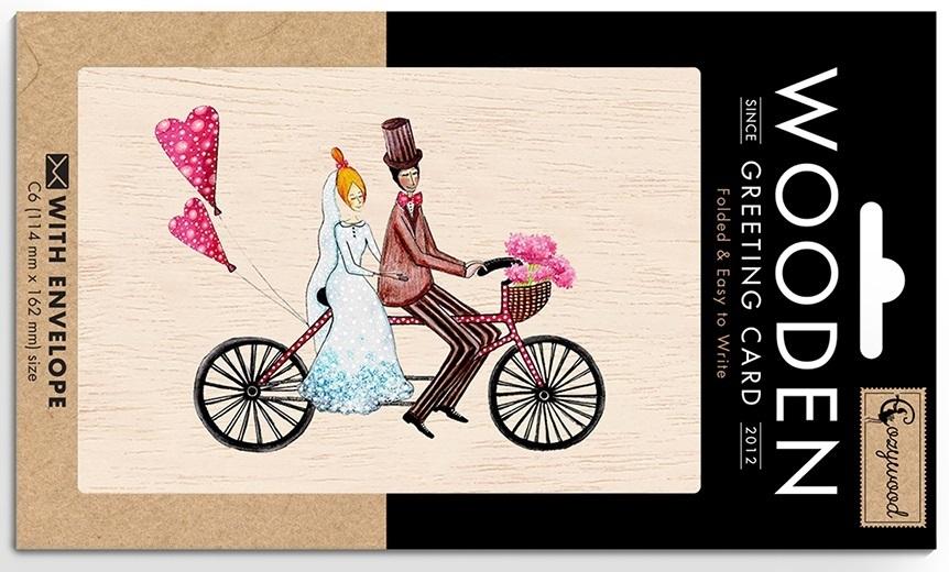 Karnet drewniany C6 + koperta Ślub Para Młoda