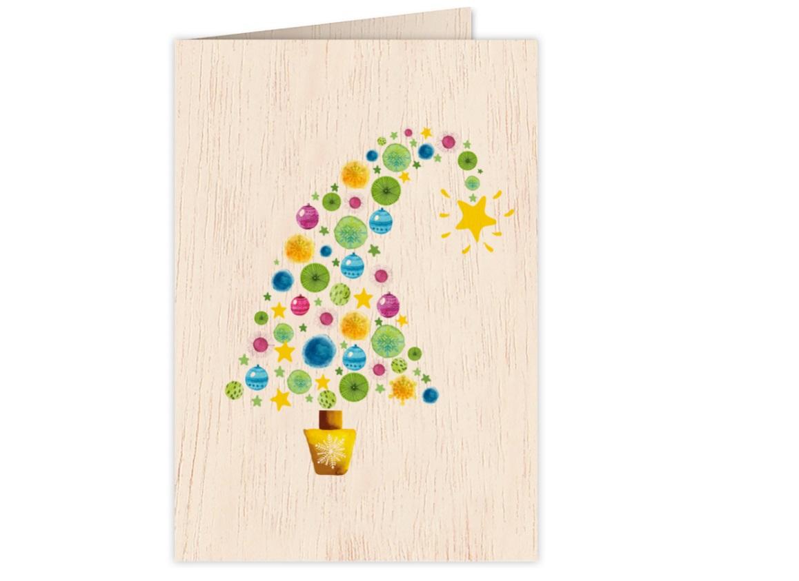 Karnet drewniany C6 + koperta Święta Choinka