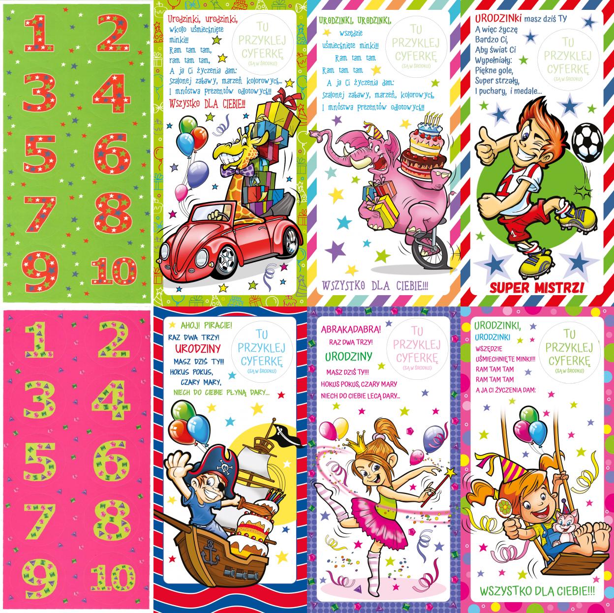 Karnet na urodziny od 1 do 10 lat (z naklejkami). 6 wzorów, wzór wysyłany losowo.
