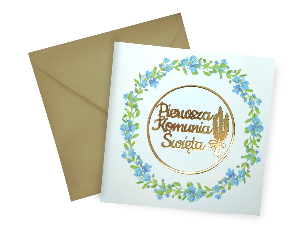 Karnet KW Komunia Niezapominajki Lakier 3D