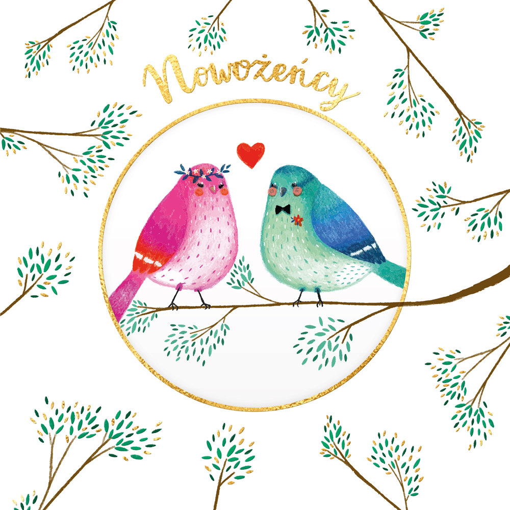 Karnet KW koperta z kółkiem Ślub Ptaki