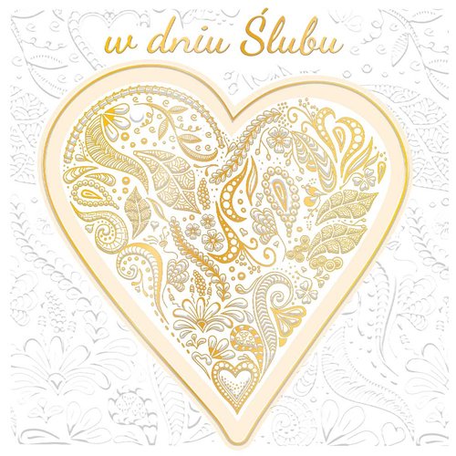 Karnet kwadratowy 15 x 15 cm. Złocony i tłoczony, teksy życzeń w środku. Wydrukowany na wysokiej jakości papierze. W zestawie koperta.