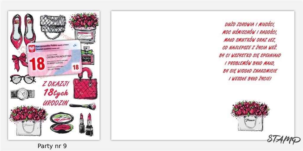 Karnet Party naklejany B6+koperta Urodziny 18 wz09
