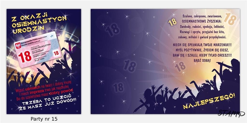 Karnet Party naklejany B6+koperta Urodziny 18 wz15