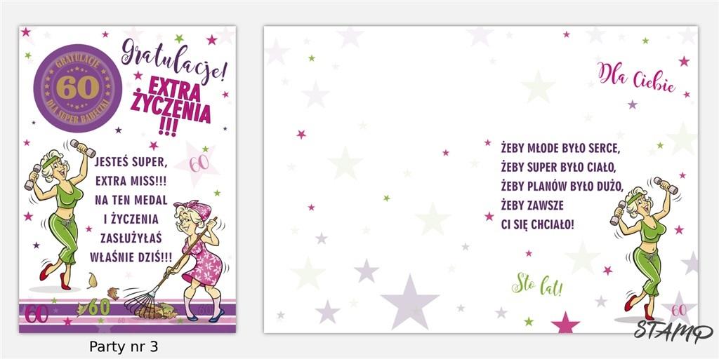 Karnet Party naklejany B6+koperta Urodziny 60 wz03
