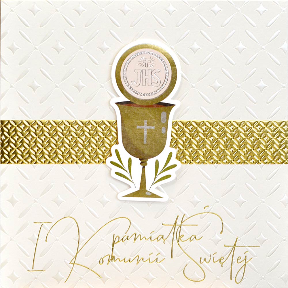 Opis produktuZasady bezpieczeństwaKartka Primus 0215 Komunia Kartki z serii Primus, to kartki najwyższej jakości, pięknie zdobione m.in złotą lub srebrną folią, tłoczeniami, czy wycinkami laserowymi. Idealne na najważniejsze okazje w życiu, takie jak ślub, komunia. W środku każdej kartki znajdują się dobrane do okazji życzenia, a do kartki dołączona jest dopasowana koperta. Cechy szczególne: wielkość: niestandardowa, prostokątna, kwadratowa, zdobienia: dekoracje ze złotej folii, doklejane koraliki, tłoczenia koperta: dopasowana w komplecie, wnętrze kartki: życzenia w środku, okazja: komunia x