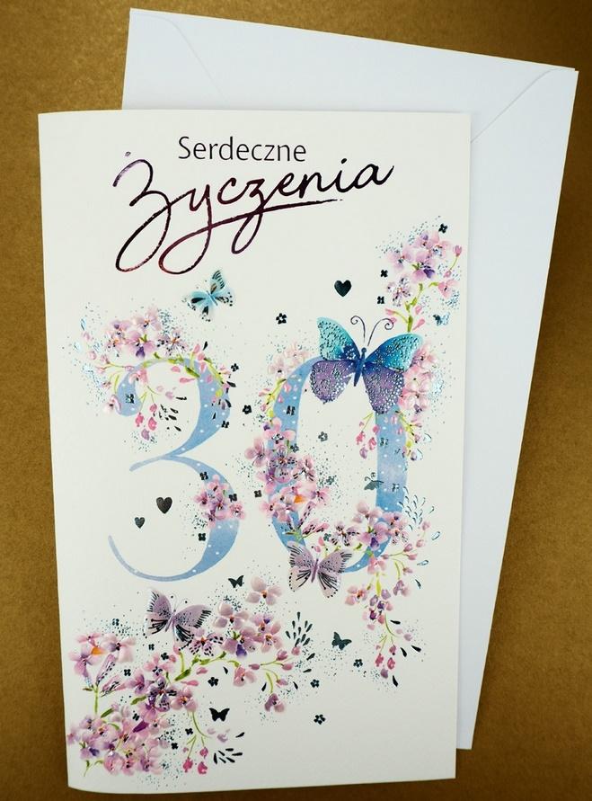 Wewnątrz karnetu ozdobny środek i życzenia: