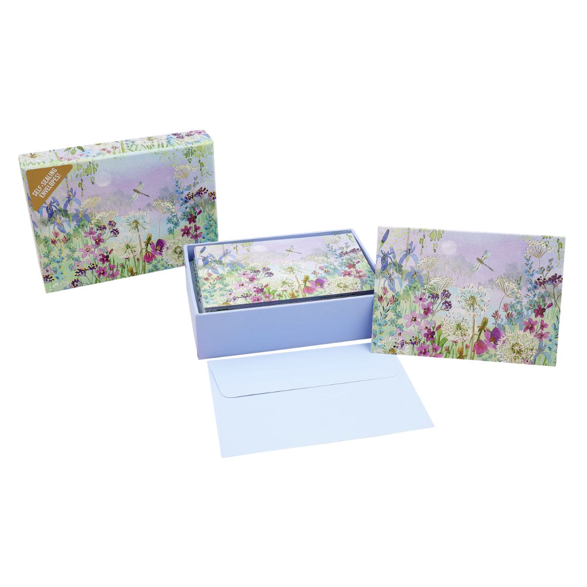 Opis produktuZasady bezpieczeństwaKolekcja eleganckich karnetów marki Peter Pauper Press Ważki i Dmuchawce (Dragonflies and Dandelions). Każda kartka posiada zdobienia ze złotej folii i dopasowaną kolorystycznie kopertę, wszystko wykonane z papieru z certyfikatem FSC. Całość została zapakowana w ozdobne pudełko z identycznym wzorem. Uniwersalna otwierana kartka okolicznościowa z pustym środkiem pozwala na pełną personalizację i stworzenie wyjątkowej pamiątki dla obdarowanej osoby. W skład zestawu wchodzą: - 14 karnetów wielkości 8,9 x 12,7 cm wykonanych z papieru o gramaturze 180 gsm, - 15 kopert wielkości 13 x 9,5 cm, - gustowne pudełko. x