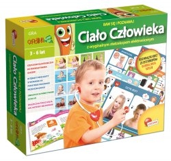 Z pomocą tego nowego i oryginalnego zestawu edukacyjnego również najmniejsze dzieci dowiedzą się, jak zbudowane jest ludzkie ciało. Znajdą tu wiele kart z pytaniami o części ciała, ich funkcjonowanie oraz 5 zmysłów - na które mogą odpowiedzieć specjalnym stetoskopem elektronicznym.