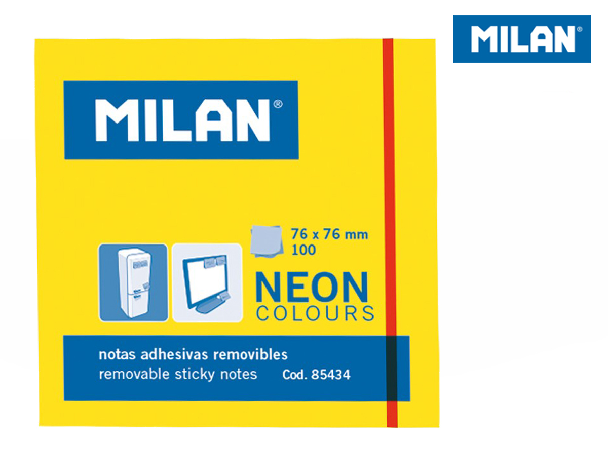 Karteczki Milan neonowe 75x75 mm żółte, 80 sztuk