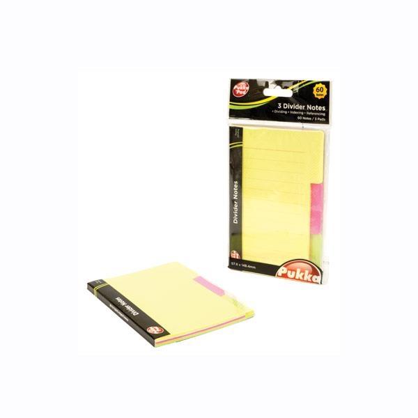 Odklejalny notatnik z wystającą przekładką indeksującą, razem 60 szt w 3 kolorach.
