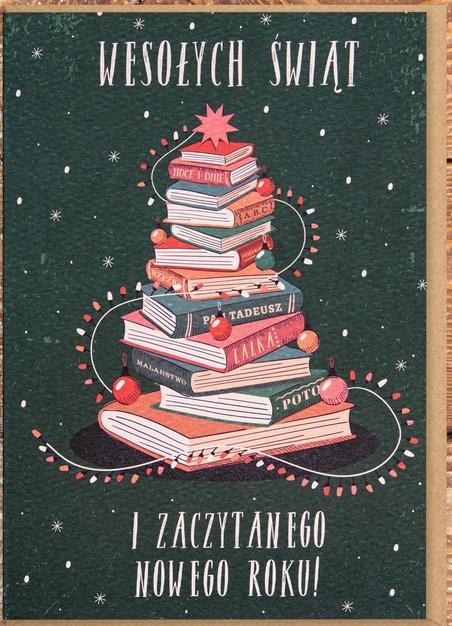 Kartka Wesołych Świąt i zaczytanego Nowego Roku