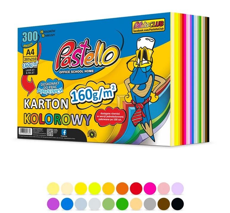 Karton kolorowy A4 160g 20 kolorów 300 arkuszy