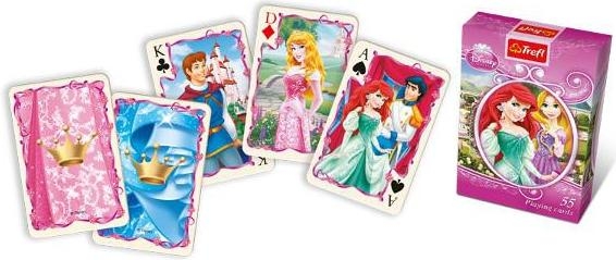 Oryginalna talia kart z Księżniczkami z filmów animowanych Disneya została stworzona z myślą o rodzinnej rozgrywce. Talia zawiera standardowy zestaw kart, pozwalający grać we wszystkie popularne gry karciane. Piękna grafika z Księżniczkami zwiększa radość z gry. Talia zawiera 55 listków karcianych