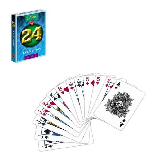Klasyczne karty do gier karcianych. Mała talia - 24 karty (od 9 do Asa). Karty wykonane z papieru w tekturkowym opakowaniu. Karty z rewersem w kolorze czarnym lub czerwonym. Przy wysyłce wybierane losowo.