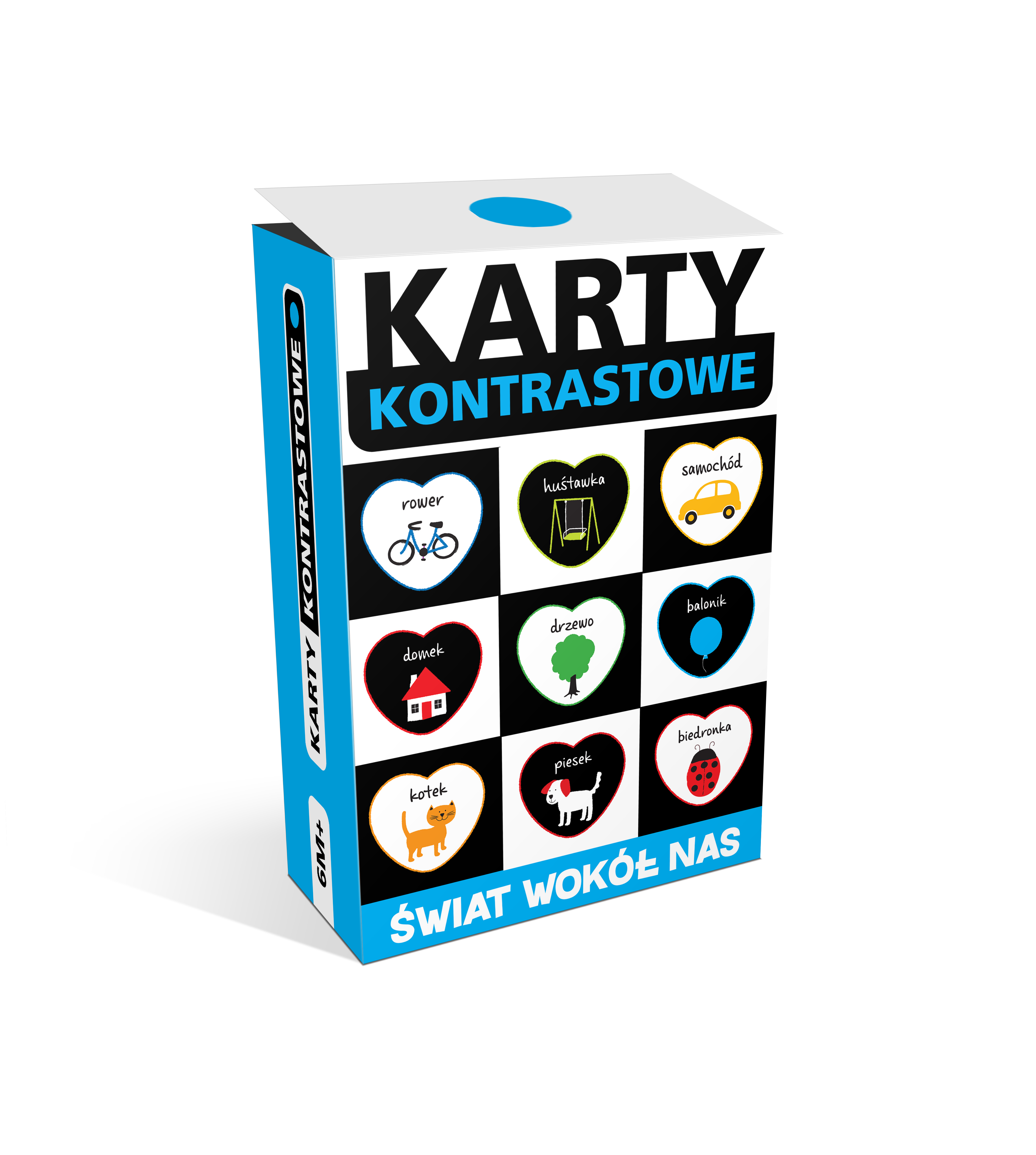 Nowa propozycja w serii kontrastowej. Karty do pokazywania niemowlęciu lub do zawieszenia nad łóżeczkiem malucha. Dla dzieci 3M+ i 6M+. x