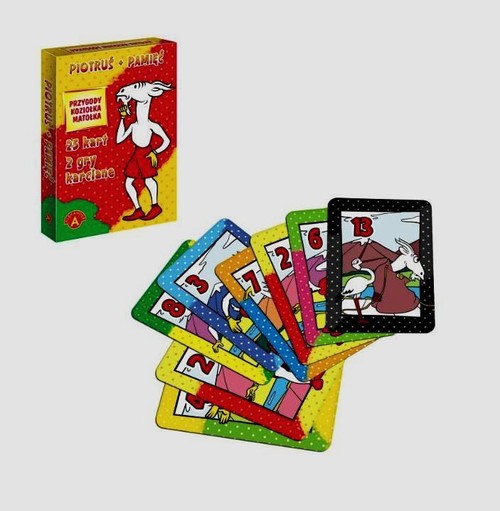 "Piotruś" i "Pamięć" to 25 kart pozwalających grać w dwie gry rozwijające spostrzegawczość i zapewniające dużo dobrej zabawy ich uczestnikom."Piotruś" - karty dobiera się w pary. Wszystkie karty mają parę, poza jedną - Piotrusiem. Osoba, która na końcu rozgrywki zostanie z Piotrusiem w ręku, przegrywa. "Pamięć" - karty rozkłada się na stole zakryte. Gracze odkrywają po kolei po dwie karty. Jeśli tworzą parę - gracz zyskuje punkt. Jeśli karty nie tworzą pary - po pokazaniu wszystkim graczom wracają na stół w te same miejsca.