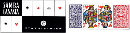Tradycyjne, wysokiej jakości karty do gry renomowanej firmy Ferd. Piatnik & Sohne. W komplecie 3 talie w pudełku oraz notes do zapisu. Talie składają się z 55 plastikowanych kart o wymiarach 58 x 89 mm i gramaturze 310. Idealne zarówno do kanasty jak i innych gier. Wyroby wiedeńskiej fabryki Ferd. Piatnik & Sohne od 1824 roku urzekają bogactwem wzorów i perfekcją wykonania. Jakość i tradycja!
