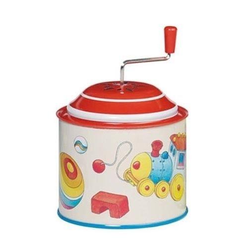Podczas kręcenia korbką metalowa puszka wydaje przyjemne dla ucha dźwięki.