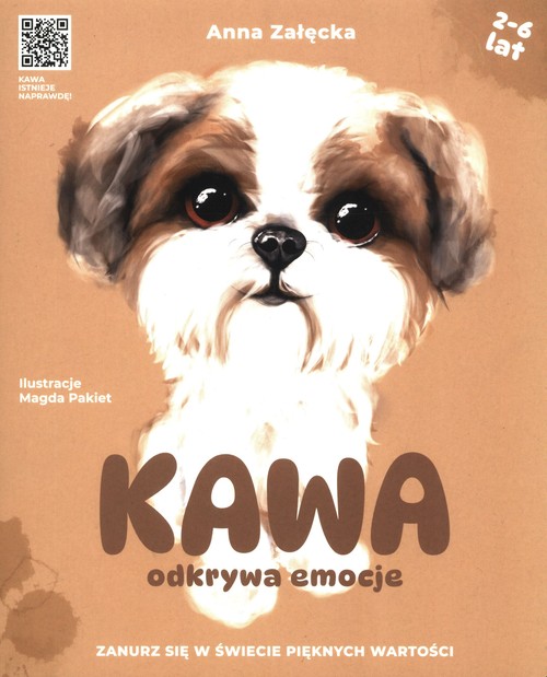 Opis produktuZasady bezpieczeństwaKawa odkrywa emocje to pierwsza z serii wartościowych książek dla dzieci w wieku 2-6 lat. Główna bohaterka istnieje naprawdę i można śledzić jej pieskie życie w social mediach! W książce ""Kawa odkrywa emocje"" tata Kawy zaprasza nas w niezwykłą podróż do wesołego miasteczka świata pełnego atrakcji, które przypominają i wzbudzają emocje. Okazuje się, że radość może przywoływać na myśl kręcącą się karuzelę, a strach bekające myszki. W czasie rodzinnej wycieczki Kawa spróbuje odnaleźć odpowiedź na pytanie: Czy w wesołym miasteczku można być smutnym? Zrozumie, że dzięki poznaniu i oswojeniu emocji łatwiej sobie z nimi poradzić. A nasze serce przypomina właśnie wesołe miasteczko! Książka emanuje symboliką zaszytą w słowach i ilustracjach. Pisana jest w duchu rodzicielstwa bliskości i porozumienia bez przemocy. Nie podpowiadamy złych zachowań pokazujemy dobre postawy. Co więcej, mały czytelnik otrzymuje dołączony do książki: Bilet do wesołego miasteczka uprawniający do przeżywania różnych emocji. Aby zawsze wiedział, że może śmiać się, zachwycać, denerwować, smucić, tęsknić, płakać. Książka uczy kreatywności i uważności poprzez zawarte na ostatniej stronie ""Symbolisko"", czyli mapę symboli. Nie zabrałko również anglojęzycznych zwrotów dzięki pobocznej bohaterce - pszczółce Lily. x