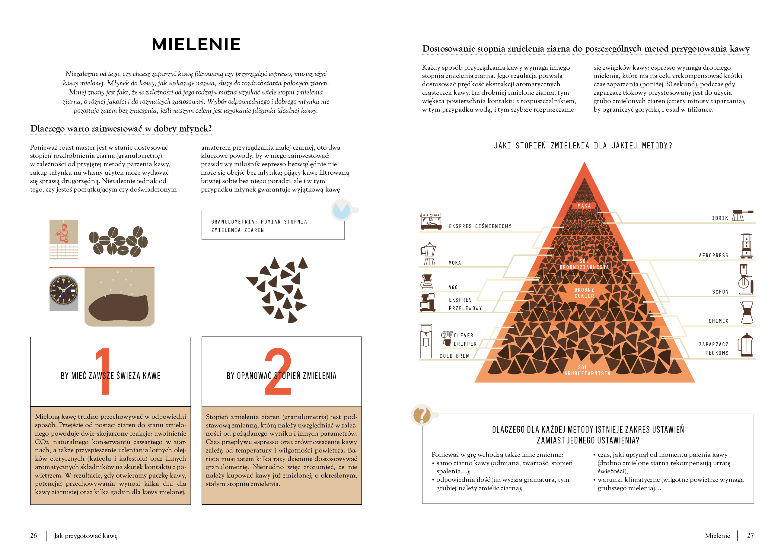 Opis produktuZasady bezpieczeństwaPraktyczny i zabawny przewodnik idealny dla początkujących kawoszy, a także dla najbardziej wymagających miłośników kawy. Czy wiesz, że kawa jest drugim po wodzie najczęściej spożywanym napojem na świecie? Ile krajów zajmuje się zbieraniem i obróbką ziaren? Jak długą drogę musi pokonać ziarno, by od rolnika, przez palarnię, trafić w ręce baristy? Poznaj sekrety baristów naucz się prawidłowych sposobów mielenia kawy, tak by wydobyć głęboki smak w zależności od sposobu jej przyrządzania wybierz najlepszy dla siebie ekspres do kawy odbierz prawdziwą lekcję latte art. Wydobądź najlepszy aromat z każdego ziarna Sbastien Racineux trener baristów i nauczyciel przedmiotów ścisłych. Założyciel organizacji Espressologie i laureat drugiego miejsca w konkursie French Brewers Cup 2012. Chung-Leng Tran fotograf i barista. Mistrz French Brewers Cup 2012. x