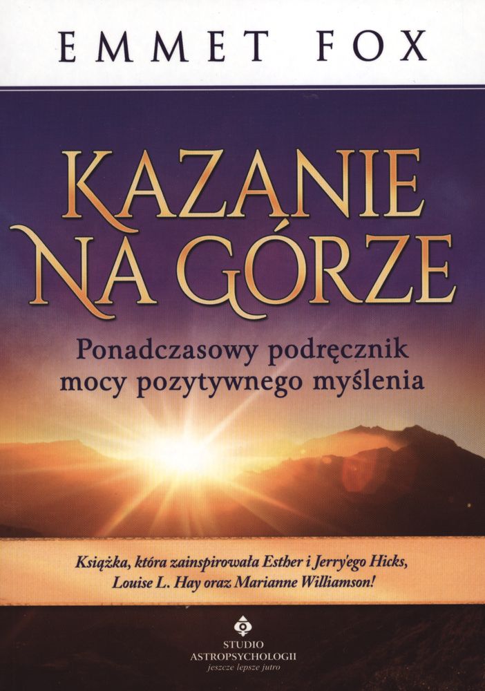 Opis produktuZasady bezpieczeństwaWszyscy słyszeliśmy o cudach, jakie może zdziałać pozytywne nastawienie. Niektórzy nazywają je Prawem Przyciągania, inni efektem placebo, a jeszcze inni przekształcają to oddziaływanie umysłu na materię w pozytywne afirmacje bądź wizualizacje. Niezależnie, jak by tego fenomenu nie nazwać, renesans korzystania z pozytywnej mocy ludzkich myśli rozpoczął się od tej książki.Emmet Fox napisał swój przełomowy podręcznik w 1934 roku, ale jego treść wciąż jest aktualna. To właśnie ta publikacja stanowiła impuls twórczy dla wielkich pisarzy, którzy inspirują współczesnych ludzi do zmiany swojego nastawienia. Dzięki Kazaniu na górze Esther i Jerry Hicks, Wayne W. Dyer i Louise L. Hay stworzyli dzieła, które zainicjowały wewnętrzną transformację milionów czytelników. Teraz ta przełomowa publikacja, będąca tekstem źródłowym międzynarodowych hitów, jest nareszcie dostępna w Polsce.Autor jest prawdziwym pionierem w udowadnianiu prawdziwej siły pozytywnego myślenia, a ta książka jest uznawana za najlepszy podręcznik harmonijnego życia. Dzięki niej możesz bez trudu osiągnąć szczęście, zdrowie i dobrobyt. Dowiesz się, jak przekształcić negatywne nastawienie w przekonania będące afirmacją życia i zrozumieniem natury boskiej mądrości. Publikacja wprowadza również praktykę skutecznej modlitwy i ujawnia prawdziwe znaczenie modlitwy Ojcze nasz. Przede wszystkim jednak udowadnia, że każdemu z nas jest pisane szczęśliwe życie.Wieczna mądrość lepsze jutro! x