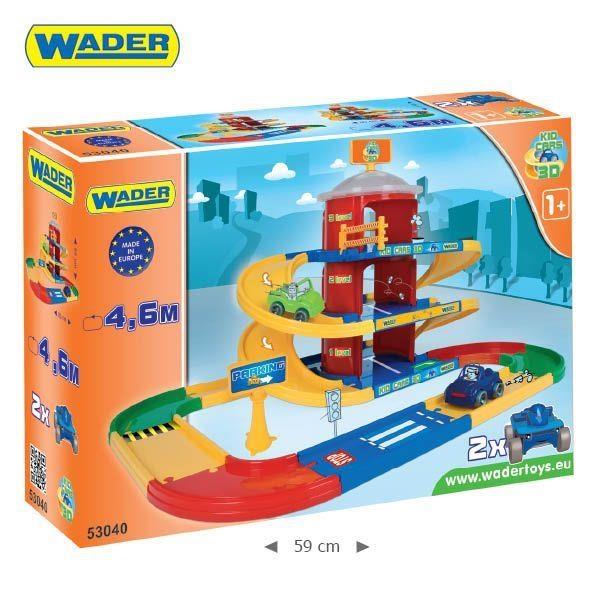Jest to zestaw z serii Kid Cars 3d w skład którego wchodzi droga o łącznej długości 4,6 m i 3 poziomowy parking oraz 2 autka.
