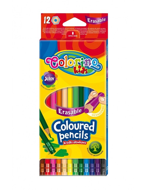 Kids kredki ołówkowe Colorino heksagonalne wymazywalne z gumką 12 kolorów