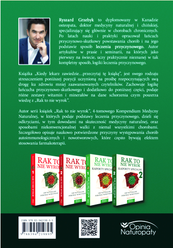Opis produktuZasady bezpieczeństwaKiedy lekarz zawiedzie… przeczytaj tę książkę jest świetnym wprowadzeniem w tematykę wykazującego się niezwykłą skutecznością leczenia przyczynowego. Jest to o tyle istotne, że wokół tego tematu narosło bardzo wiele nieporozumień, nadinterpretacji i wymysłów, niemających wiele wspólnego z zasadą takiego leczenia, pojawiło się też wielu pseudofachowców, którzy najczęściej uwzględniają w terapii zaledwie 1–3 ogniwa z łańcucha przyczynowego (a jest ich 16) i reklamują się jako leczący przyczynowo. Leczenie przyczynowe to zastosowanie wszystkich elementów łańcucha narazw przypadku danego pacjenta, zarówno w diagnozie, jak i w układaniu schematu terapii, co nie jest ani łatwe, ani oczywiste. Na tym właśnie polega główna różnica pomiędzy leczącymi przyczynowo a osobami twierdzącymi, że tak leczą. Do zapoznania się z tą niecodzienną wiedzą w skróconej formie zapraszam tutaj, a w wersji o wiele bardziej rozwiniętej – zapraszam do Rak to nie wyrok Spis treści x