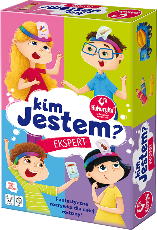 „Kim jestem? EKSPERT” to mniejsza wersja znanej i lubianej gry z trudniejszymi hasłami. Gra uczy logicznego myślenia, precyzyjnego formułowania myśli i analizowania zdobytych informacji. Dodatkowo, możesz sam wymyślić hasło i zapisać je na pustej karcie!
