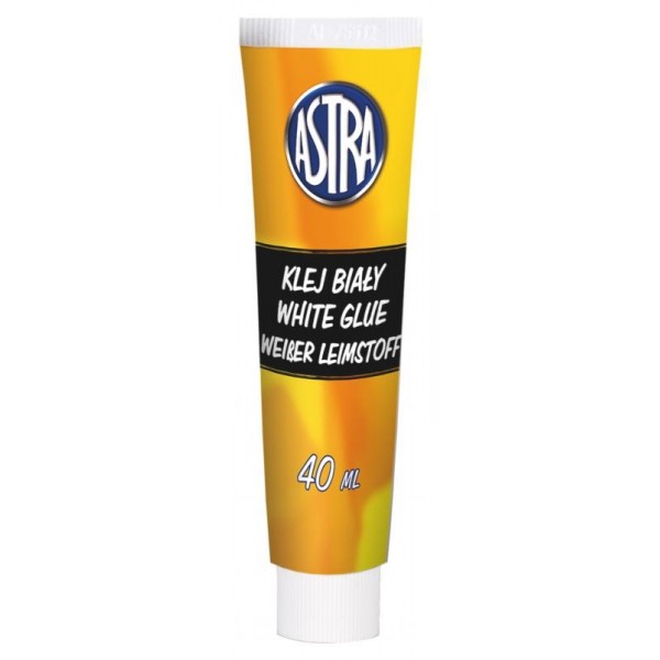 Klej w tubie ASTRA jest klejem o konsystencji pasty. Nadaje się przede wszystkim do klejenia papieru i cienkiej tektury. Jest łatwo zmywalny i nie pozostawia zabrudzeń.