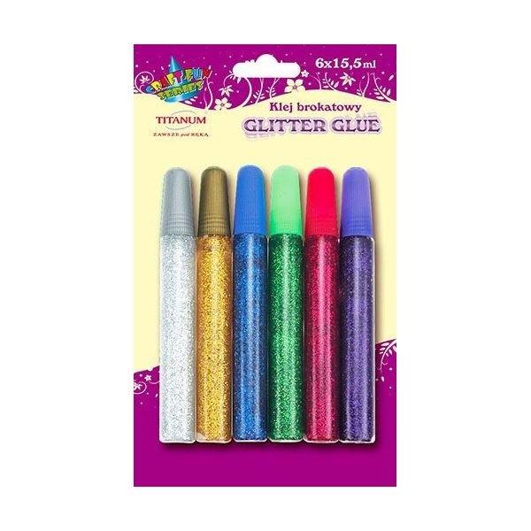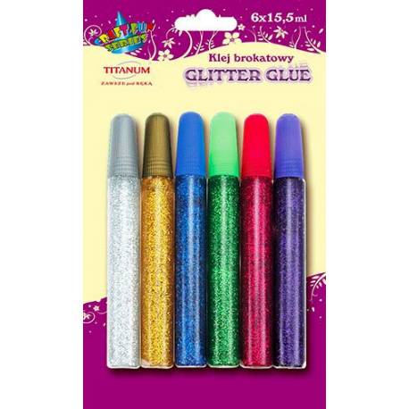 Klej brokatowy. 6 kolorów. Uwaga! Nieodpowiednie dla dzieci poniżej 3 roku życia.