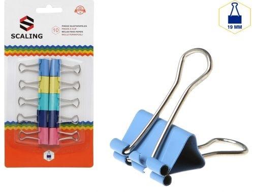 Zestaw klipsów metalowych rozmiar 19mm, 10 sztuk na blistrze, różne kolory.
