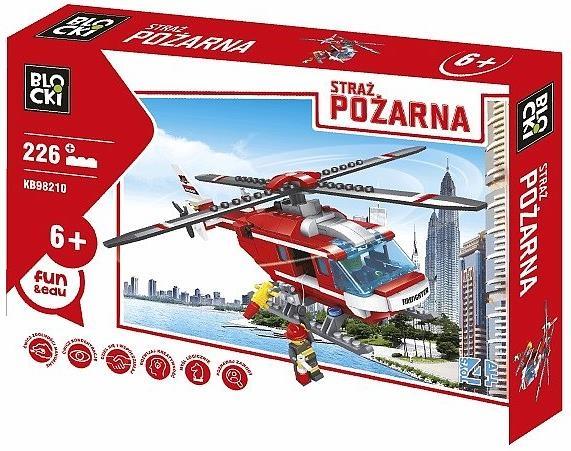 Zestaw klocków do budowy śmigłowca Straży pożarnej z wyciągarką i dwiema figurkami. Zestaw składa się z 226 elementów.