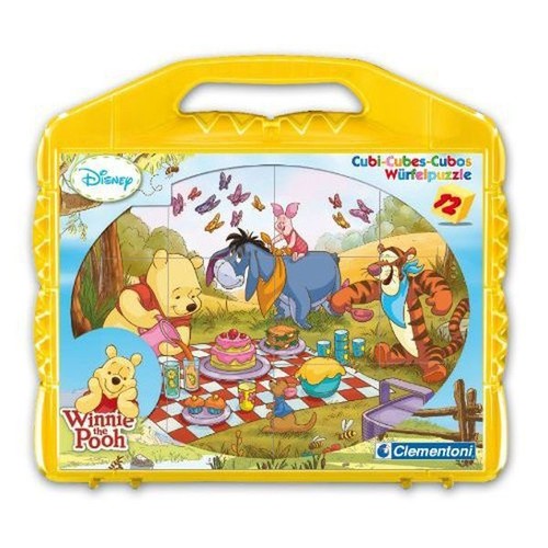 Klocki obrazkowe dla najmłodszych - Kubuś Puchatek. Znana i lubiana bajka Disney'a przeniesiona została na klocki. Każdy bok klocka przedstawia inną scenę, więc możesz ułozyć 6 obrazków. Układanka klockowa rozwija koncentrację, spostrzegawczość oraz zdolności manualne. Zestaw zamknięty jest w plastikowej walizeczce co umożliwia wygodne przechowywanie klocków.