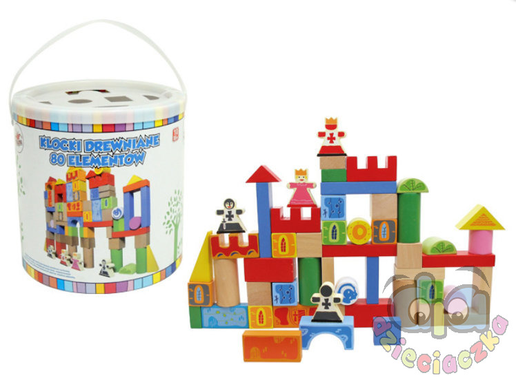 Klocki drewniane w wiaderku 80 el. Królestwo