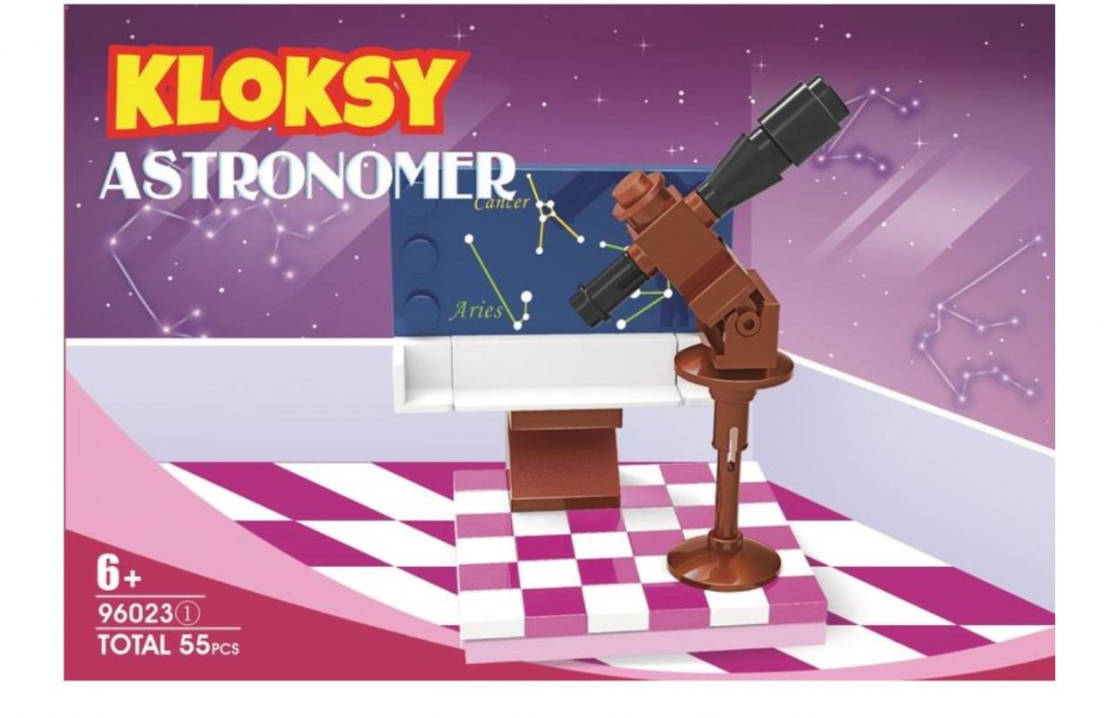 Klocki KLOKSY Seria Bella Villa - zostań astronomem, 65 elementów. Zestaw pakowany w display 12 szt. wraz z innymi rodzajami.