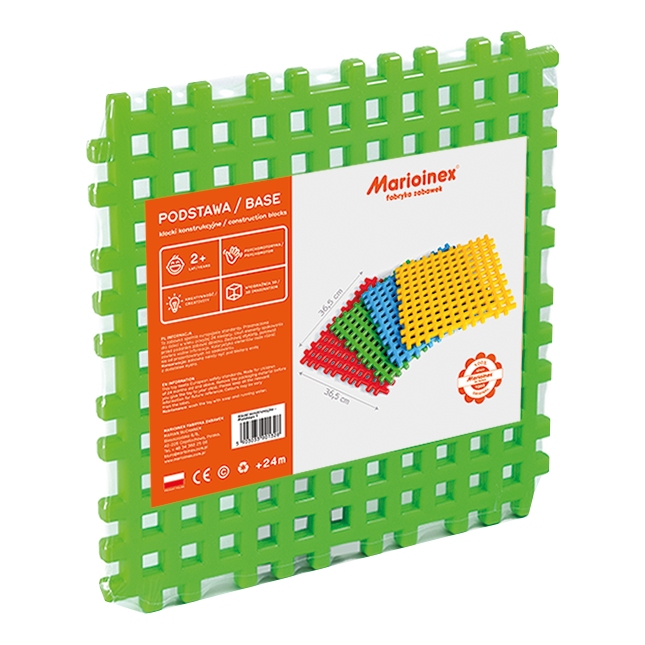 Opis produktuZasady bezpieczeństwaZestaw klocków konstrukcyjnych 'podstawa x1' składający się z 1 elementu o wymiarze 36,5 x 36,5 cm. x