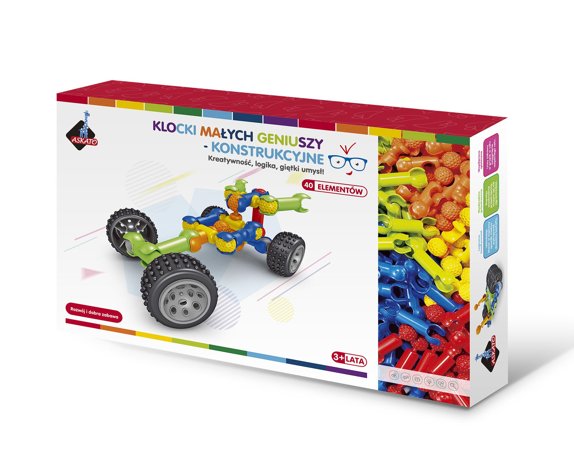 Opis produktuZasady bezpieczeństwaEdukacyjne klocki konstrukcyjne 40 klocków w 8 kolorach pozwalają stworzyć fantastyczne, przestrzenne figury takich jak dinozaur, samochód czy dźwig. POLSKIE OPAKOWANIE x