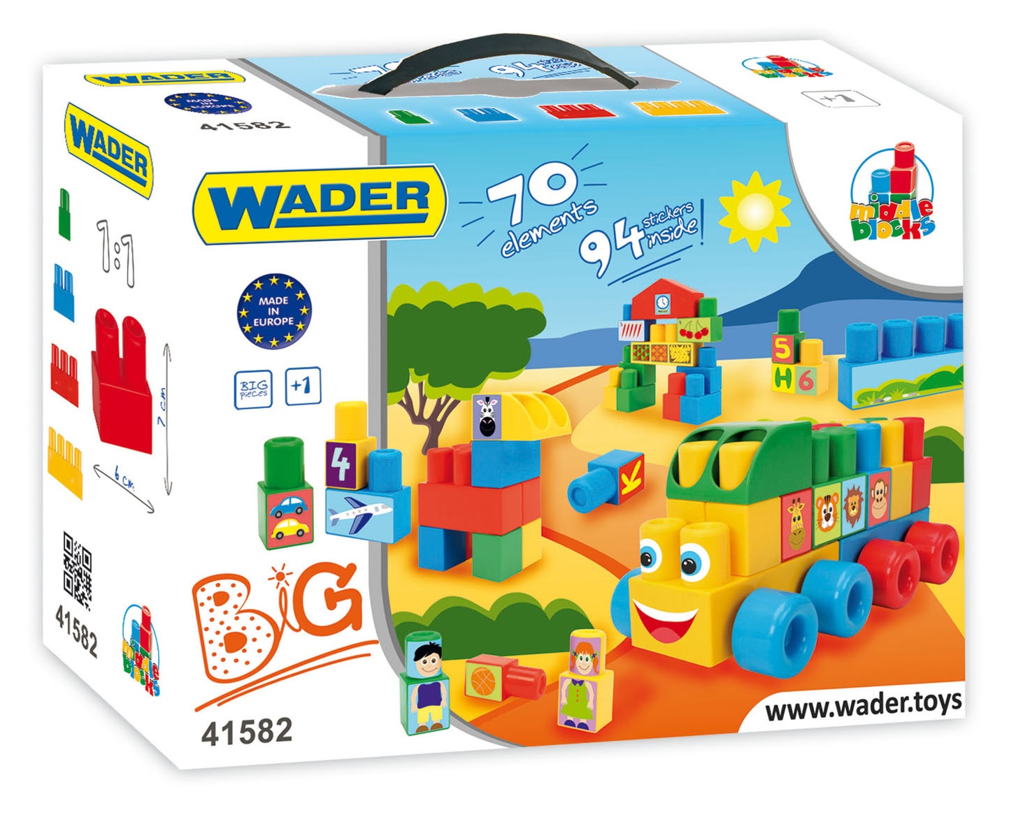Middle Blocks Big to zestaw 70 klocków o ciekawej kolorystyce wykonanych z wysokiej jakości tworzywa sztucznego. Do zestawu dołączono 94 naklejki (cyferki, literki, ludziki, zwierzątka, itp. ). Ze względu na swoje gabaryty są idealnie dostosowane do rączek najmłodszych dzieci a różnorodność form umożliwia tworzenie z klocków rozmaitych budowli, pojazdów i postaci rozwijając w dziecku wyobraźnię dziecka i jego zdolności manualne.