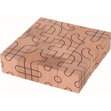 Komplet marki Goki składa się z 16 sześciennych kostek wykonanych z drewna. Po każdej płaszczyźnie pojedynczego elementu przebiegają linię o ciekawym wzorze. Cała magia zaczyna się, gdy dziecko przystawia poszczególne kostki do siebie tworząc obrazy przez samo łączenie ze sobą przebiegających po nich linii. Wspaniały pomysł na ciekawy i oryginalny prezent. Wymiary klocka: 3,5 x 3,5 x 3,5 cm x