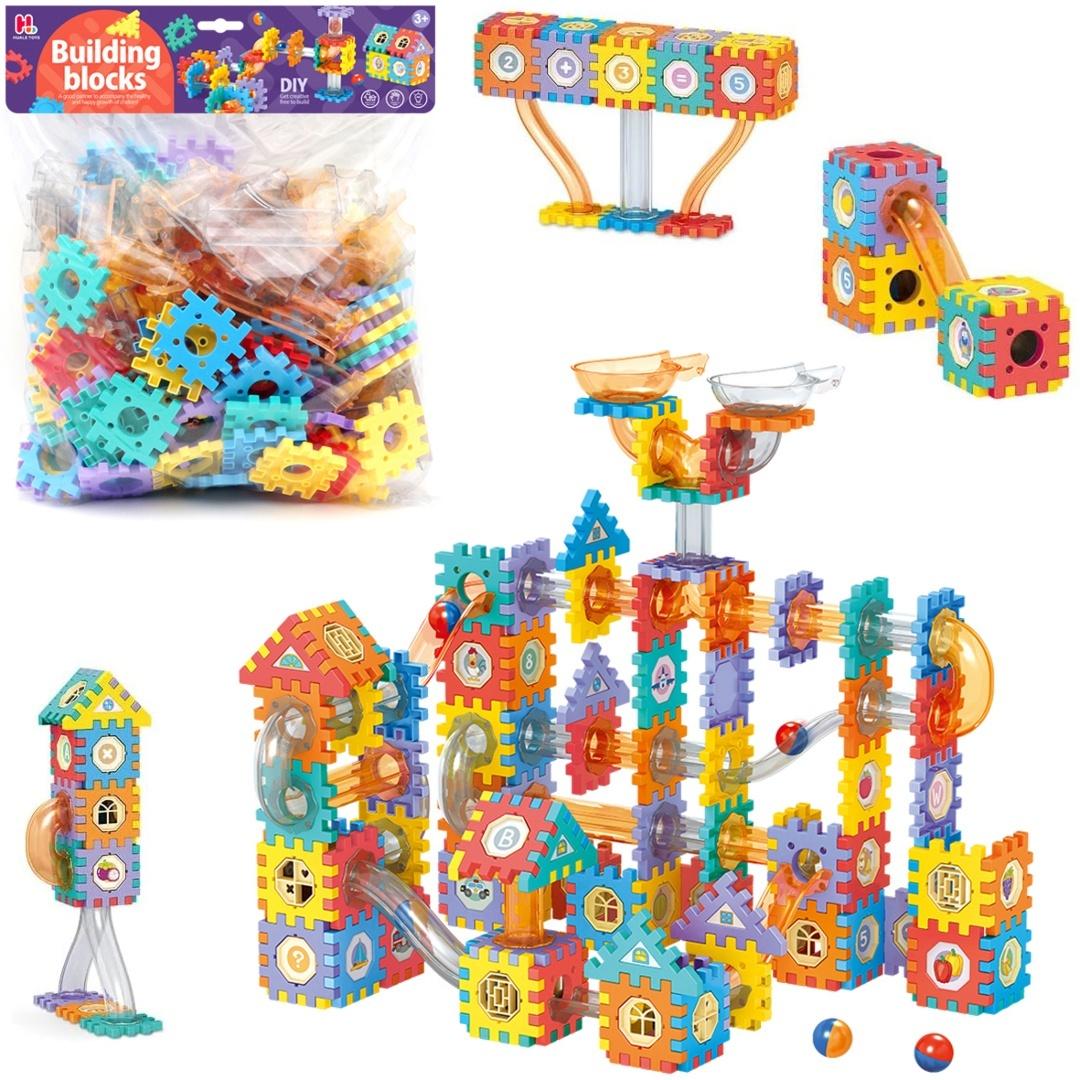 Opis produktuZasady bezpieczeństwaKlocki Konstrukcyjne "Building Blocks" - Zjeżdżalnia dla Kulek Garaż Kulodrom DIY Przedstawiamy innowacyjne klocki konstrukcyjne "Building Blocks", które pozwalają na stworzenie fascynującej zjeżdżalni dla kulek, znanej również jako kulodrom lub garaż kulodrom! Ten wszechstronny zestaw to prawdziwa gratka dla małych inżynierów i budowniczych, oferująca nieograniczone możliwości tworzenia skomplikowanych torów dla kulek. Nieograniczone Możliwości Konstrukcyjne: Zestaw zawiera różnorodne elementy, takie jak kolorowe klocki modułowe (kwadratowe, trójkątne), które można łączyć ze sobą, tworząc stabilne konstrukcje. Najważniejsze są jednak specjalne elementy, które pozwalają na budowanie torów dla kulek: Klocki z otworami i tunelami: Umożliwiające prowadzenie kulek przez wnętrze konstrukcji. Elementy zjeżdżalni i rynien: Przezroczyste, zakręcone i proste fragmenty, po których kulki mogą się toczyć. Dodatkowe akcesoria: Takie jak "miski" czy "rampy" do startu i lądowania kulek. Kulki: Kilka kolorowych kulek do uruchomienia na zbudowanym torze. Dzięki systemowi "DIY" (Zrób To Sam) dzieci mogą projektować i budować unikalne zjeżdżalnie, które rozwijają się w przestrzeni, oferując niezliczone warianty zabawy. Rozwój Kluczowych Umiejętności: Zabawa tymi klockami to doskonały sposób na: Rozwój myślenia przestrzennego i logicznego: Planowanie i budowanie toru wymaga przewidywania ruchu kulek. Wspieranie kreatywności i wyobraźni: Dzieci mogą tworzyć własne, skomplikowane konstrukcje. Naukę zasad fizyki: Obserwacja ruchu kulek, grawitacji, prędkości. Rozwój zdolności manualnych i precyzji: Łączenie i dopasowywanie elementów. Rozwiązywanie problemów: Znajdowanie rozwiązań, gdy kulka utknie lub tor nie działa poprawnie. Kolorowe i Bezpieczne Materiały: Klocki występują w żywych, transparentnych i matowych kolorach (żółty, czerwony, niebieski, zielony, pomarańczowy, fioletowy, różowy), które przyciągają uwagę i zachęcają do zabawy. Wykonane są z wysokiej jakości, bezpiecznego i trwałego tworzywa sztucznego, co gwarantuje długie godziny beztroskiej zabawy. Specyfikacje: x