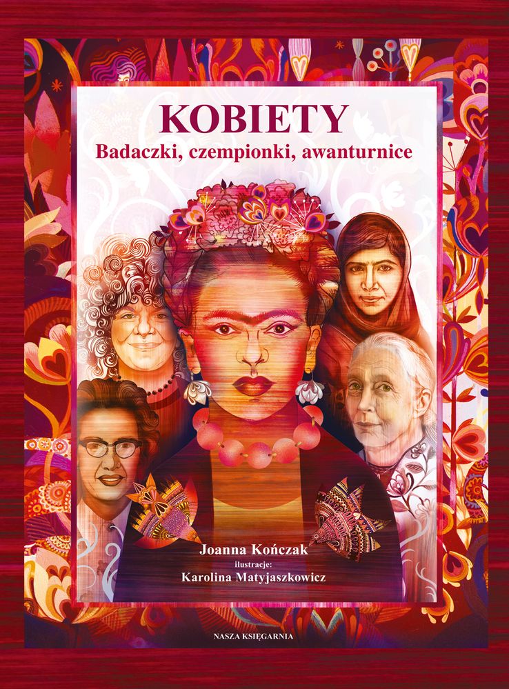 Jak działała maszyna różnicowa, a Ada Lovelace została pierwszą programistką, choć nie wymyślono jeszcze komputera? Komu zawdzięczamy skalę Apgar, przedszkola Montessori, małą czarną sukienkę, odkrycie ciemnej materii, wynalezienie papierowych filtrów do kawy, wi-fi i wycieraczek samochodowych? Jak kobiety przyczyniły się do lotów w kosmos, walczyły o prawa wyborcze i od kiedy wolno im startować w nowożytnych olimpiadach? Kto był pierwszą reżyserką, a kto zdobywczynią Mount Everestu? Przedstawiamy 35 inspirujących bohaterek, a opowieściom o nich towarzyszą fascynujące ciekawostki dotyczące różnych krajów i dziedzin. Wyjątkową formę każdej stronie nadają malarskie ilustracje Karoliny Matyjaszkowicz. Joanna Kończak z wykształcenia psycholożka stosunków międzykulturowych, z zawodu (głównie) redaktorka. Publikowała też w różnych magazynach internetowych oraz papierowych. W wolnych chwilach włóczy się po Azji, czyta stosy książek, fotografuje i hałaśliwie kibicuje ulubionym drużynom krykietowym. Od 10 lat pracuje w Naszej Księgarni, dzięki czemu ukrywa, że nie zdołała dorosnąć. Prowadzi blog hunterwaalii.com, poświęcony kinu indyjskiemu. Karolina Matyjaszkowicz urodzona w Łowiczu w 1980 roku. Ukończyła łódzką Akademię Sztuk Pięknych na Wydziale Tkaniny i Ubioru, kierunek Wzornictwo. Artystka zajmuje się malarstwem, tkaniną, ilustracją oraz tworzy muzykę. Jest laureatką licznych nagród i wyróżnień, a jej obrazy znajdują się w muzeach oraz w prywatnych kolekcjach w Polsce i za granicą. Prace można oglądać na wielu wystawach zbiorowych i indywidualnych oraz na jej stronie: matyjaszkowicz. art. pl x