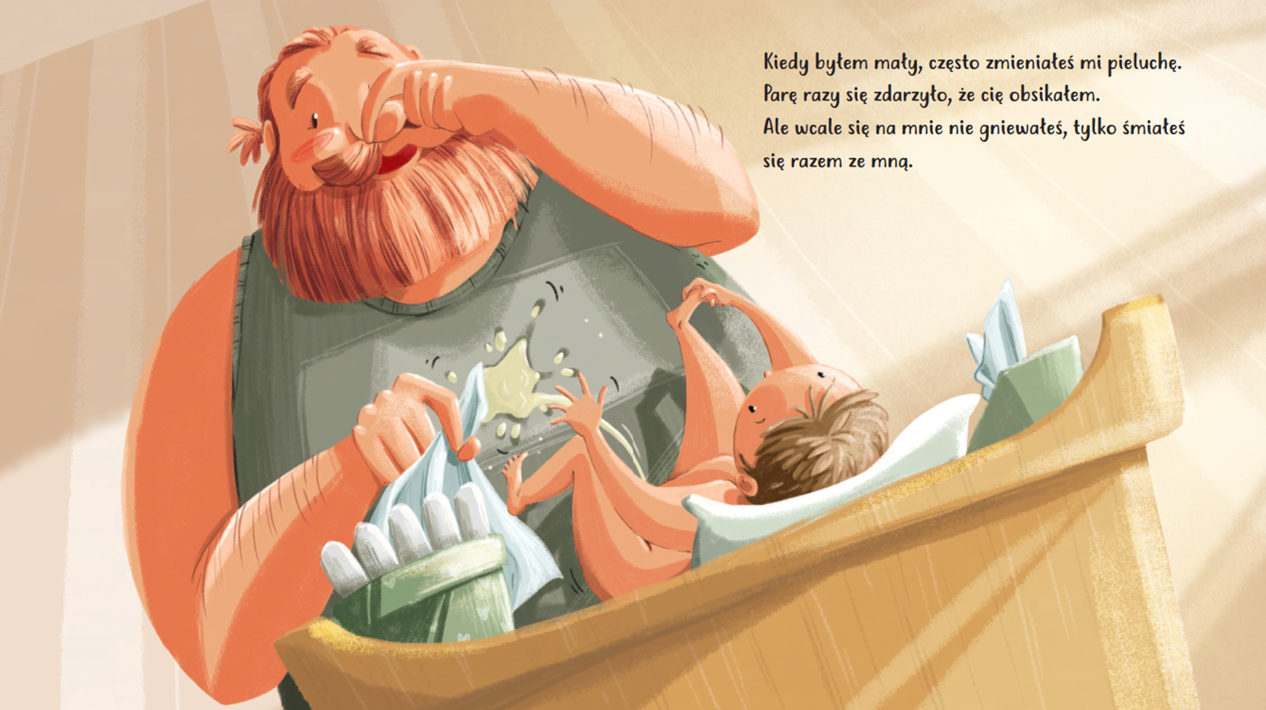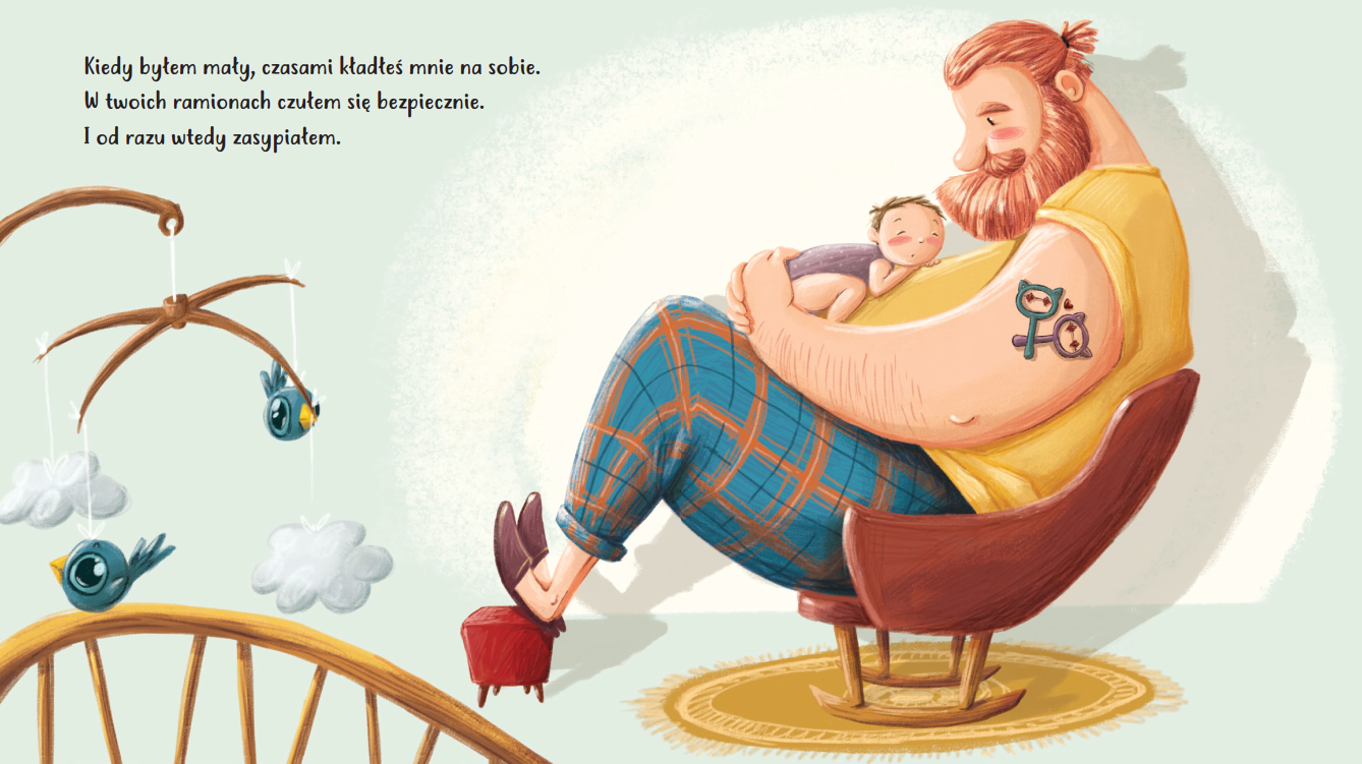 Opis produktuZasady bezpieczeństwaPIĘKNIE ILUSTROWANY picture book, którego tematem jest głęboka więź, jaka może łączyć ojca i dziecko. Większość książek, które mówią o miłości ojca i dziecka, koncentruje się na odczuciach ojca lub zapisie jego wspomnień. Tym razem patrzymy na tę relację z perspektywy dziecka. To jego oczyma oglądamy proces dorastania pod czułą OPIEKĄ TATY. I nawet jeśli w dorosłym życiu tak naprawdę niewiele pamiętamy z okresu wczesnego dzieciństwa, dzięki tej książce możemy puścić wodze fantazji i wyczarować takie wspomnienia. Nasz bohater wspomina ojcowską miłość wyrażoną w codziennych drobiazgach – we wspólnej zabawie, podczas kąpieli i karmienia Recenzje:✖ Opinia niepotwierdzona zakupem