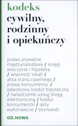 Jeden z niewielu na rynku zbiorów, który w poręcznej formie prezentuje wszystkie ważne dla prawa cywilnego materialnego ustawy i rozporządzenia. W jednym tomie zawarto Kodeks cywilny, Kodeks rodzinny i opiekuńczy, Prawo prywatne międzynarodowe, a także komplet ustaw i rozporządzeń dotyczących obrotu lokalami. Całość uzupełniają najnowsze zmiany dotyczące praw konsumenta. W tym zupełnie nowa ustawa o prawach konsumenta oraz zmienione przepisy o kredycie konsumenckim. Akty prawne już ogłoszone, ale czekające jeszcze na wejście w życie zamieszczono w ramkach. Co warte podkreślenia, na zbiór składają się nie tylko ustawy z dziedziny prawa cywilnego, ale i niemal wszystkie wydane na ich podstawie rozporządzenia. Mimo imponującej ilości zawartych w tomie aktów prawnych surfowanie po nich jest łatwe dzięki zastosowanym, graficznym wyróżnikom pozwalającym Czytelnikowi bez większego trudu odnaleźć interesujący go przepis. Kodeks został opracowany przez były zespół redakcyjny Wydawnictwa Park.Stan prawny: 1 lutego 2015 r.