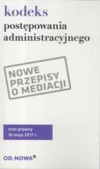 Najnowsza aktualizacja kodeksu postępowania administracyjnego. Publikacja zawiera tekst jednolity ustawy uzupełniony o prawo o postępowaniu przed sądami administracyjnymi, wraz z przepisami wprowadzającymi. Uwzględnia najnowszą, bardzo obszerną nowelizacje kpa, uchwaloną w kwietniu 2017 r. Zupełnie nowe przepisy dotyczą m.in. mediacji oraz tzw. milczącego załatwienia sprawy. Zaletą książki jest jej praktyczny, poręczny format, przejrzysty układ graficzny i niska cena. Łatwą orientację w materiale umożliwia obszerny skorowidz. Stan prawny: maj 2017 r.