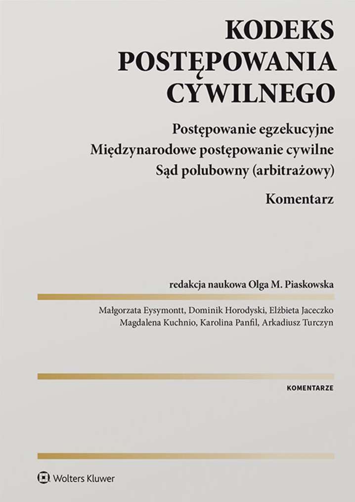 Komentarz napisany przez praktyków i z myślą o praktykach w sposób kompleksowy omawia postępowanie egzekucyjne, międzynarodowe postępowanie cywilne oraz postępowanie arbitrażowe, tj. przepisy części trzeciej, czwartej i piątej Kodeksu postępowania cywilnego. Uwzględnia wszystkie nowelizacje, które do 1.07.2022 r. zostały implementowane do przepisów Kodeksu w zakresie, w jakim odnoszą się do komentowanych regulacji, choć odnosi się także do zmian wchodzących w życie z dniem 1.09.2022 r. Dotyczą one m.in. rozszerzenia zakresu przedmiotów niepodlegających egzekucji sądowej, zajęcia nadpłaty i zwrotu podatku.