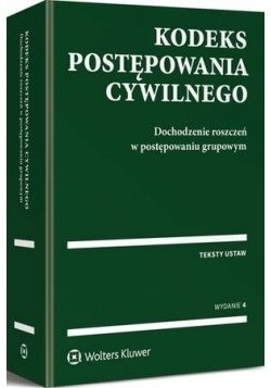 Publikacja zawiera tekst ustawy - Kodeks postępowania cywilnego wraz z wykazami aktów zmieniających i wykonujących tę ustawę, a także przepisami ją wprowadzającymi. Zamieszczono również ustawę o dochodzeniu roszczeń w postępowaniu grupowym.